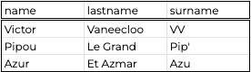 And finally, if I want all data, ordered by surname alphabetical order, only for names with an "i" in them, I'll do: